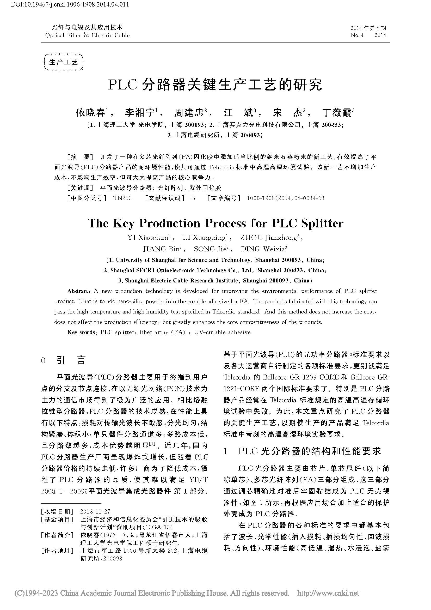PLC分路器關鍵生產(chǎn)工藝的研究