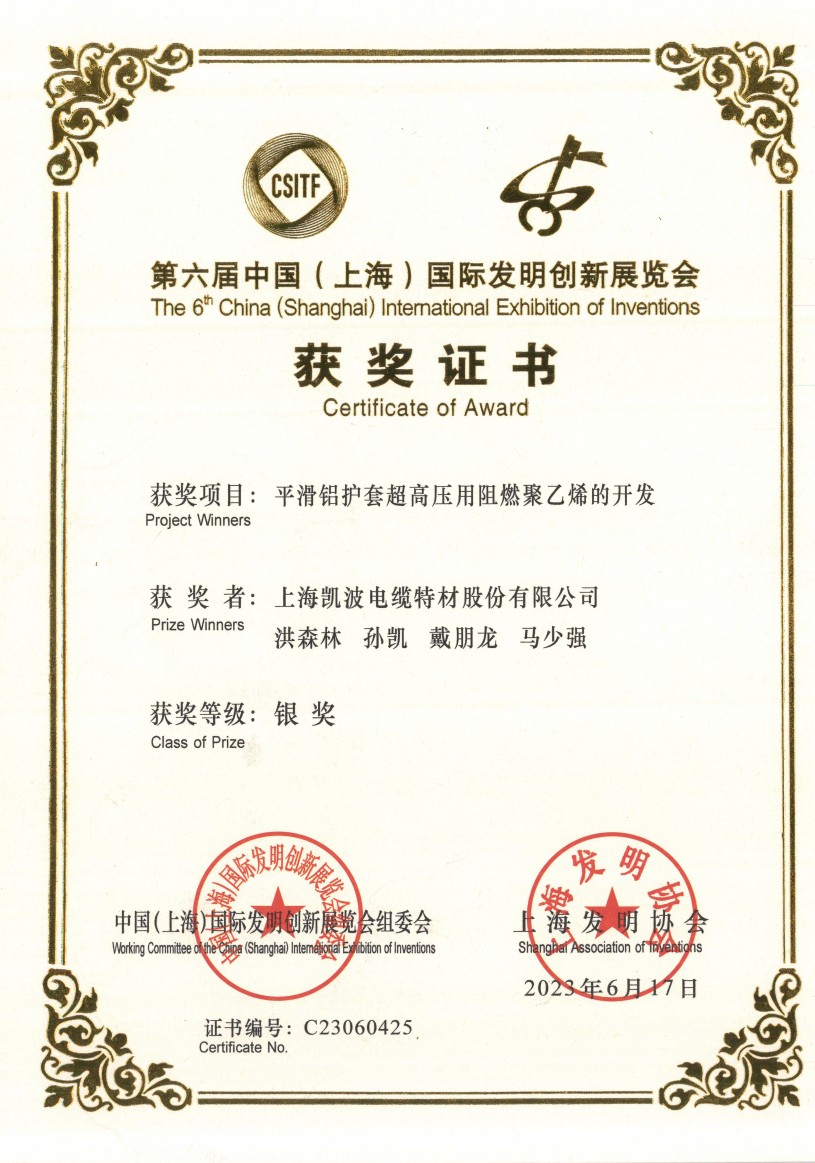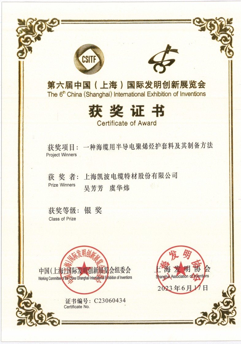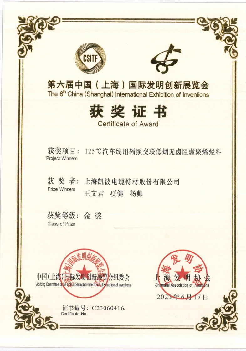 電纜所下屬上海凱波電纜特材股份有限公司申報的五個項目,經層層篩選,從眾多參展項目中脫穎而出,取得了2金2銀1銅的佳績!