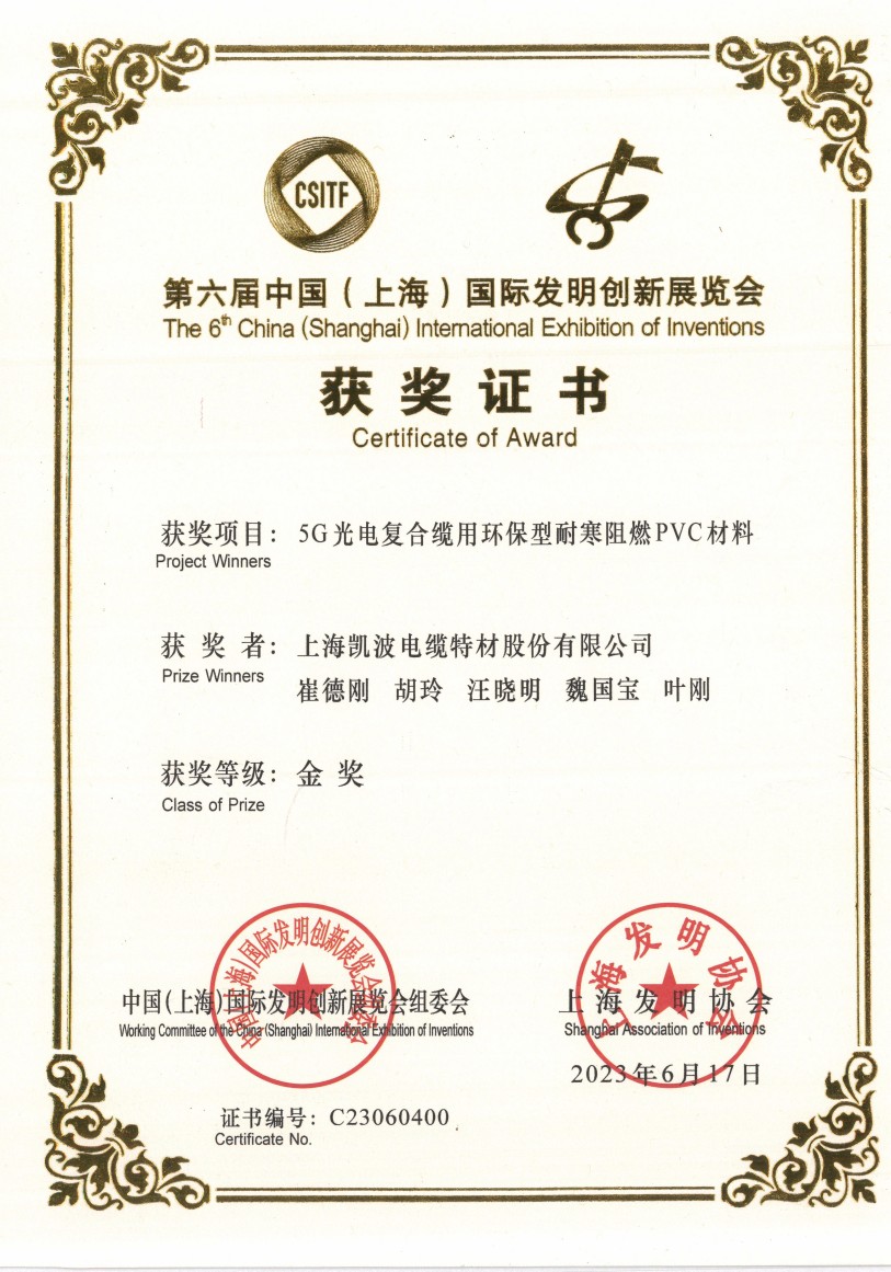1、5G光電復合纜用環(huán)保型耐寒阻燃PVC材料(金獎)